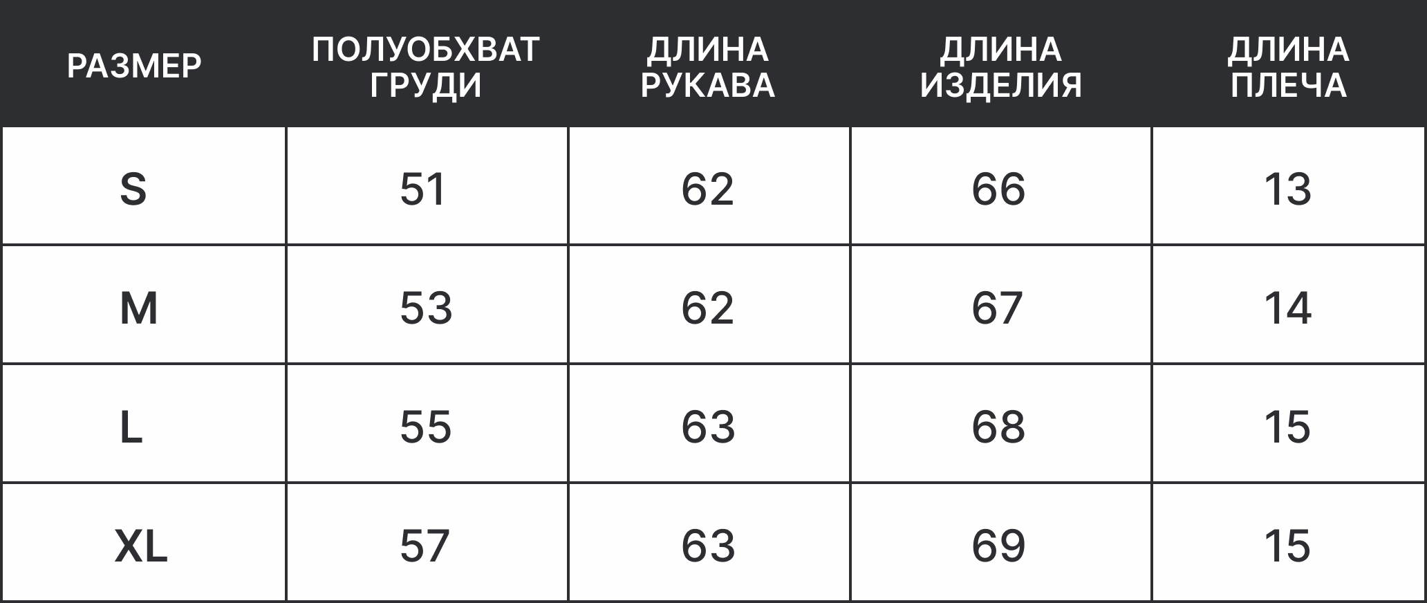 Гид по размерам рубашка
